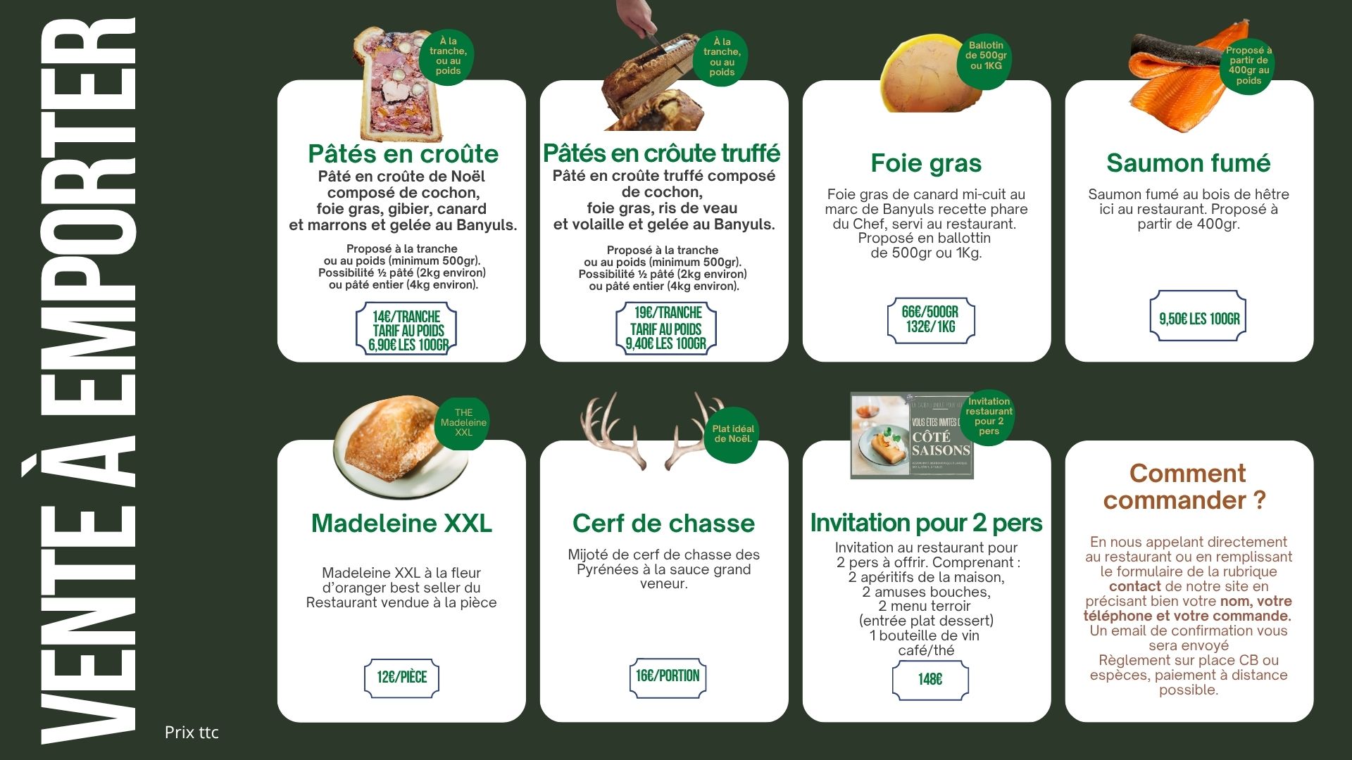 Viandes origine France Espagne - Prix TTC minimum entrée plat ou plat dessert